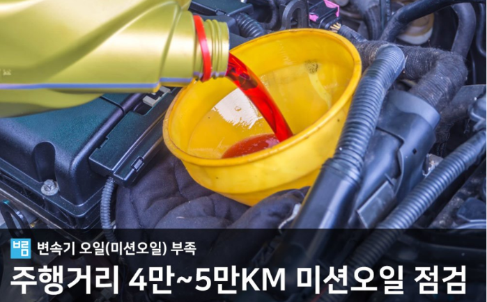 오토 트랜스 미션오일 점검주기는 약 4만km ~5만km 주기로 점검 후 교환할 것을 권유하고 있으나 차량 운행 상태에 따라 다르게 적용되기도 합니다.