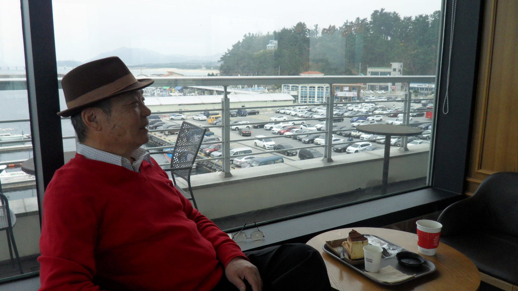 모래밭에서 발장단 맞추며 "오동 추야"노래 부르며