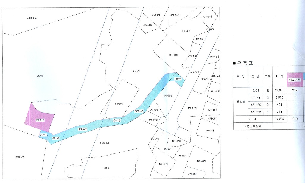 사업계획 : 잔금 지급 완료 후 1,500㎡ 이하로 분할하여 전원주택 단지로 분양.(개발 부담금을 없애기 위함)
