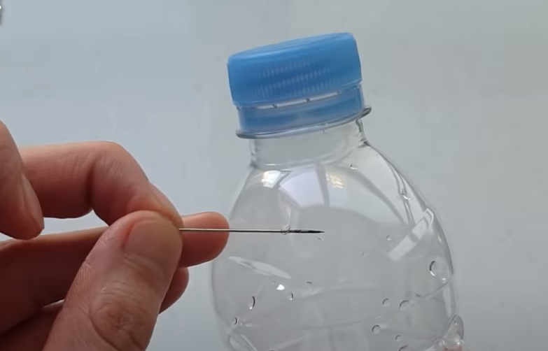 5 페트병 위에서 5cm 아래쪽에 원형으로 구멍을 내 주세요 (약10정도)