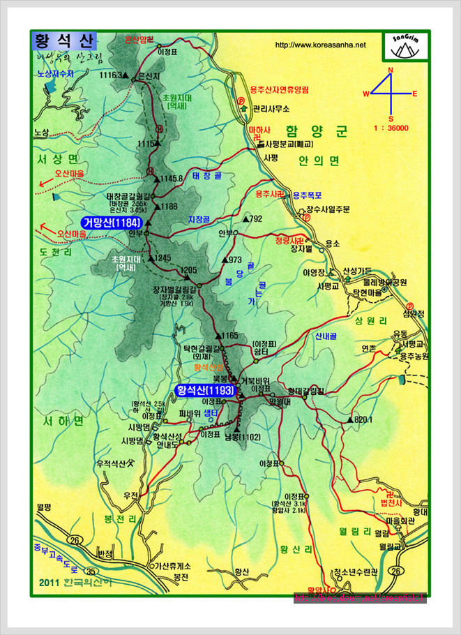 ♣ 산행 코스 : A코스 09시 10분;황암사~망월대~황석산~북봉~거망산~빽 지장골(험로)~600m태장골(편한길)~용추사 주차장 하 15;30