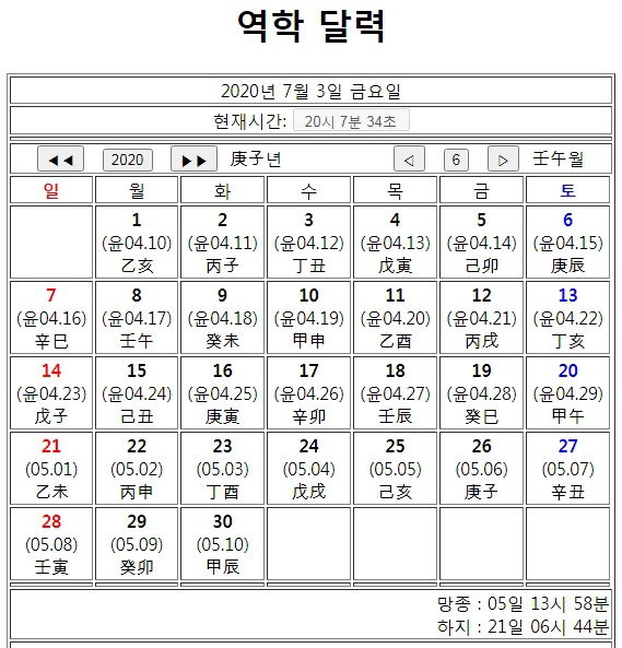 역학 달력 캡처 이미지입니다.