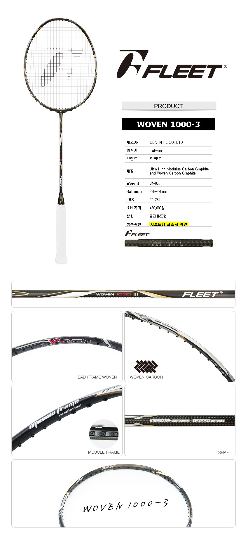 우븐소재란? 우븐은 카본섬유를 가공하는 방법 중 하나입니다. 내구성이 떨어지는 고탄성 카본의 내구성을 올리기 위한 가공법이죠. 자 그럼 카본소재에 대해 자세히 알아볼까요? 카본은 항공기술에 적용되는 고급기술로써 카본섬유의 탄성계수와 변동계수를 향상시킨 과학적인 기술입니다. 이 기술에 사용한 [나노엑폭]시 합성수지는 라켓을 보다 특별하고 내구성이 강화되게 만들어 불규칙한 상황과 예리한 각도에서 날아오는 셔틀의 타구시 동등한 힘이 전달되도록 해주어 사용자가 좀더 세밀한 콘트롤이 가능하게 합니다. 플리트 최고급 우븐라켓의 짜릿한 타구감을 느껴보세요 |