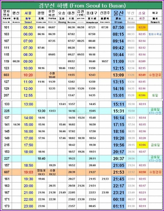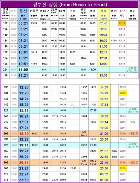 11월 1일 개통된 KTX 울산역 시간표를 다음과 같이 안내합니다.