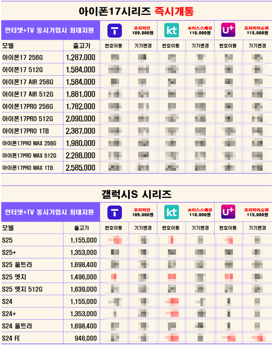 최저가 시세표들 구경하러 와보세요!