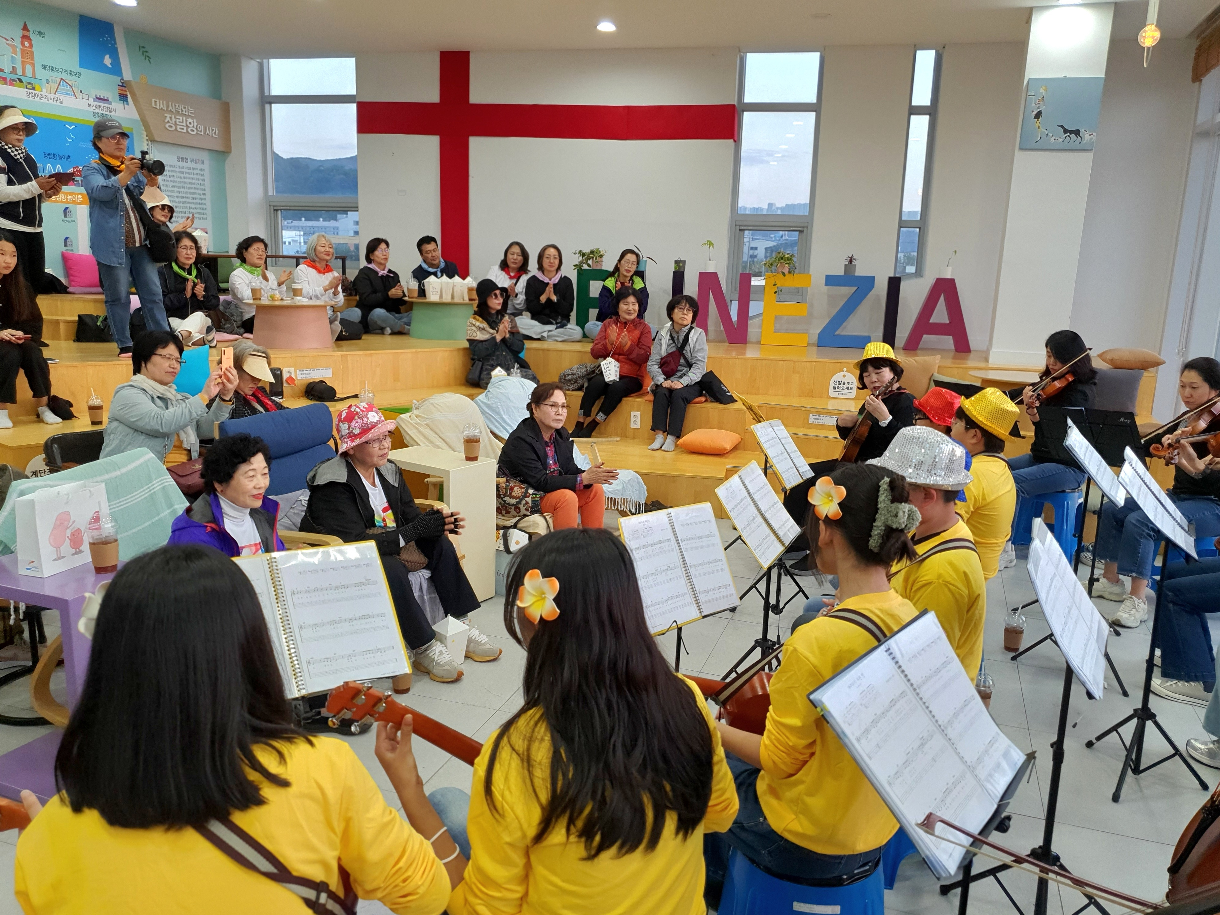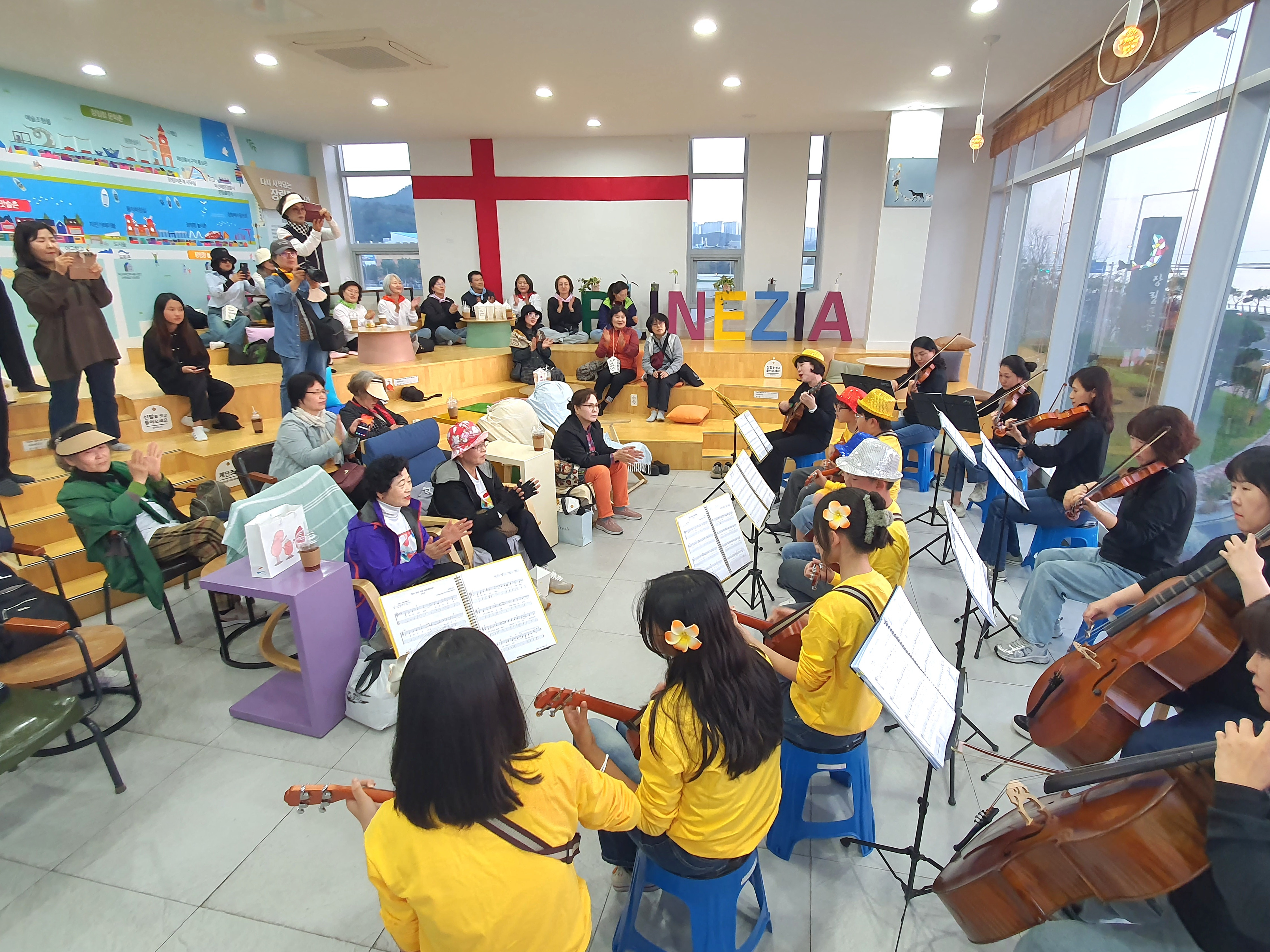 마을축제에 참가하여 바이올린, 첼로와 합주로 연주발표회를 가졌습니다.