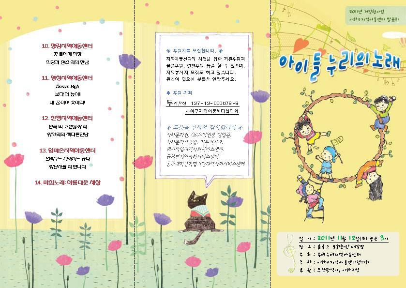 [스크랩] 발표회 초대장 및 리플렛입니다. 작성자하단지아|작성시간11.11.07|조회수631 목록 댓글 0 글자크기 작게가 글자크기 크게가 발표회 초대장과 리플렛입니다. 첨부파일첨부된 파일이 4개 있습니다. etc 파일 우리누리_리플렛_초대권_3차.PDF 다운로드 jpg 파일 아이들누리의노래.jpg 다운로드 jpg 파일 공연순서.jpg 다운로드 jpg 파일 아이들 누리의 노래2.jpg 다운로드 다음검색 스크랩 원문 : 사하구지역아동센터협의회 현재 게시글 추가 기능 열기 북마크 공유하기 신고 센터로 신고 댓글 댓글 0 댓글쓰기 답글쓰기 댓글 리스트