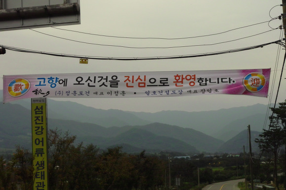 마을입구에는 "고향에 오신 것을 진심으로 환영합니다!"란 현수막도 달았다. 아울러 면에서는 추석맞이 면민 화합 노래자랑을 실시하고, 고향을 찾아오는 동창생을 맞이하여 초동학교 동창회를 한다는 현수막도 달았다. 누런 황금들판에 서 있는 허수아비조차 고향을 찾아오는 사람들을 반기듯 웃고 있다.