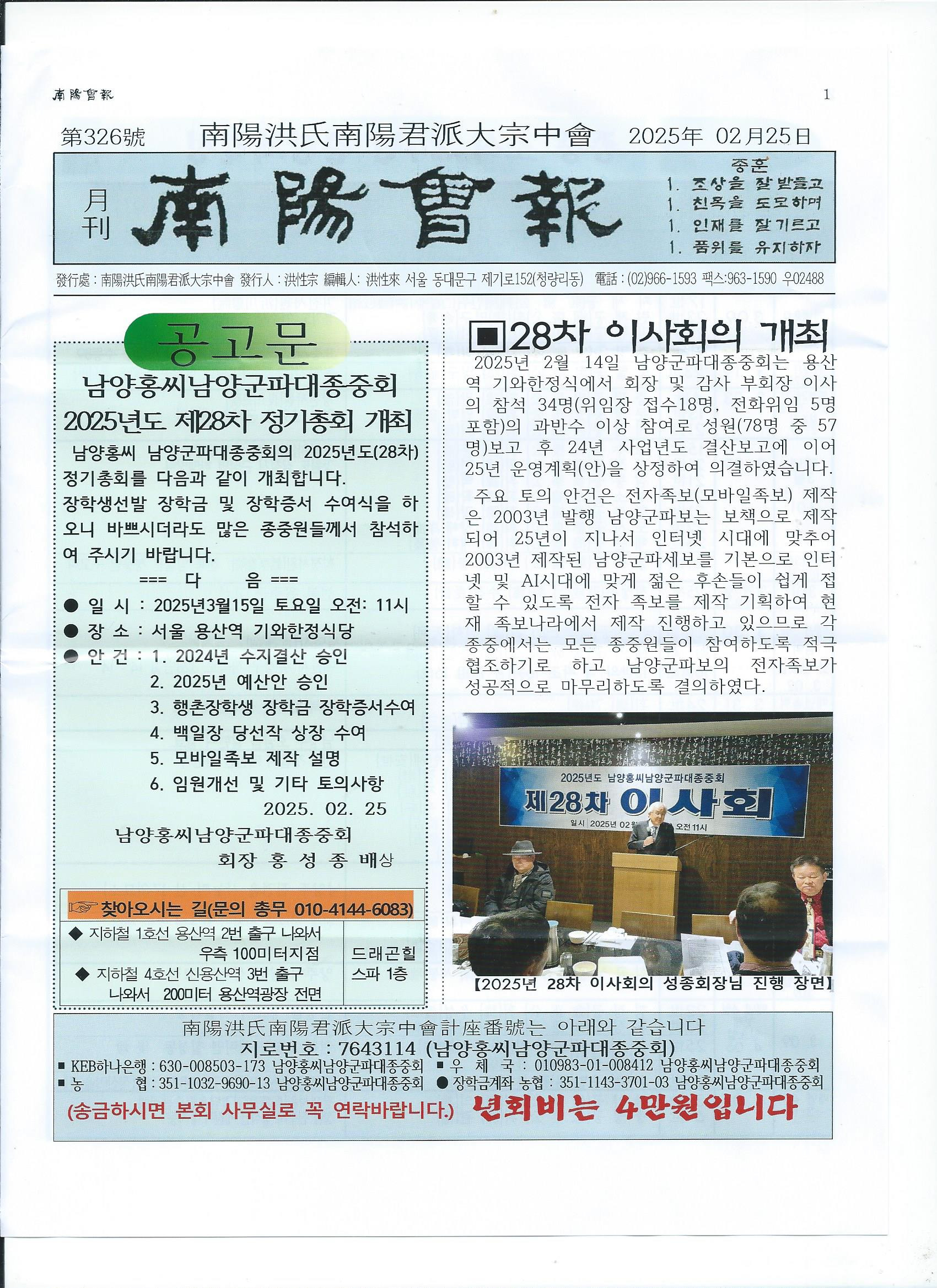 [스크랩] [회보]월간남양회보제326호 작성자鶴川(학천)|작성시간25.04.19|조회수18 목록 댓글 0 글자크기 작게가 글자크기 크게가 다음검색 스크랩 원문 : 남양홍씨 종친회 현재 게시글 추가 기능 열기 북마크 공유하기 신고 센터로 신고 댓글 댓글 0 댓글쓰기 답글쓰기 댓글 리스트