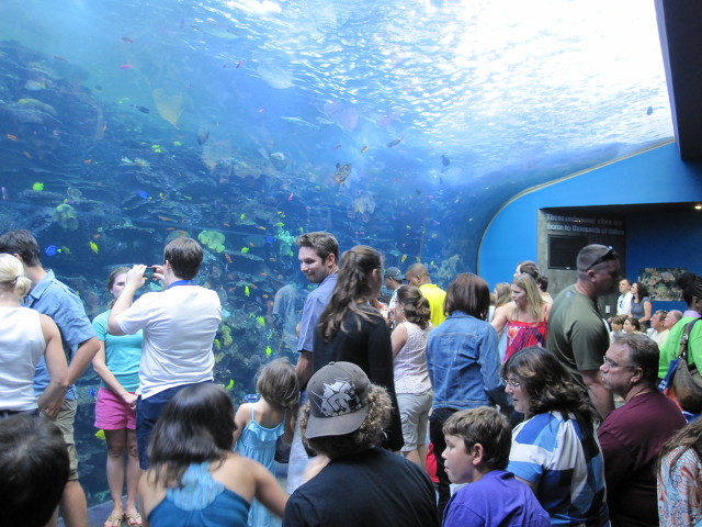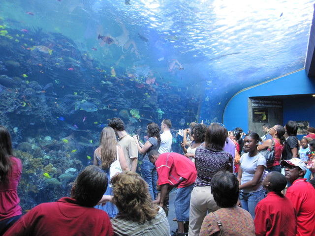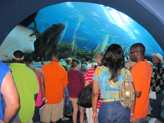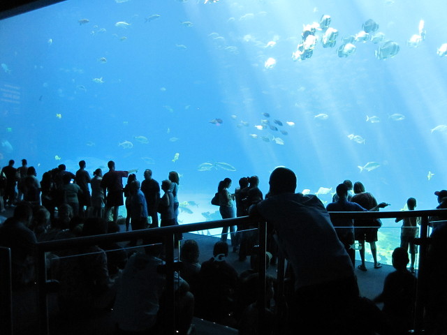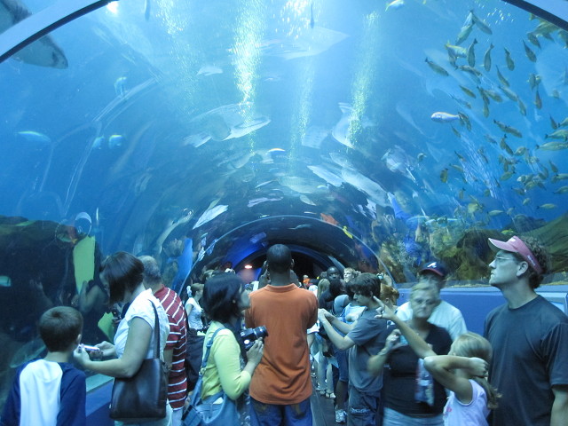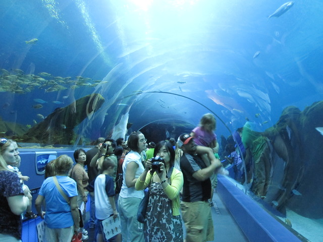수족관의 하이라이트라 할수있는 터널은 유리로 설계되어 관람자들이 거대한 유리 터널속에서 물고기들의 움직임을 볼수있다.