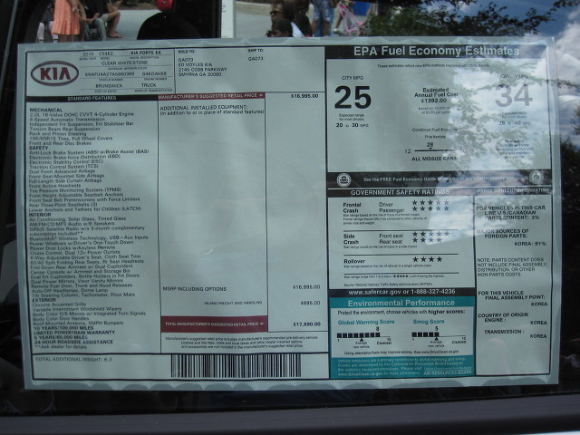 기아 Forte Ex 형으로 미국에서의 딜러가격은 17,690 달러이며 한국에서 생산되었다.