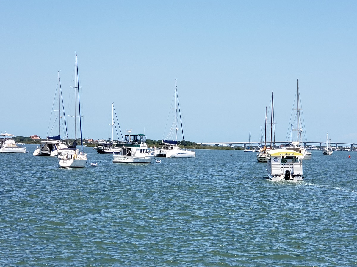 정박된 요트, 그리고 카스틸로 데 샌 마르코스 국립기념 공원의 남쪽 요새 부분이 보인다.