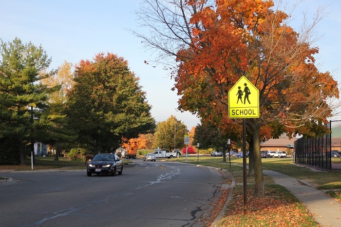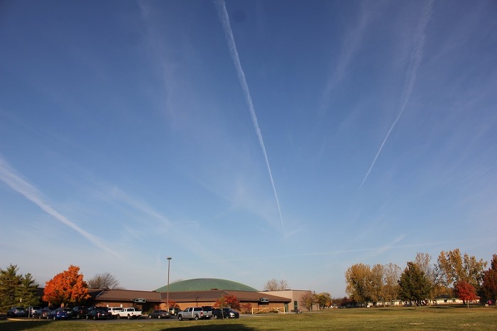 학교 앞으로 진입하는 도로이다. 푸른 하늘에 여객기들의 헌적을 남긴 줄들이 보인다. 미국 하늘에는 약 3,300대의 여객기들이 실시간으로 운항하고 있다. 그 중에서도 737 여객기는 제일 안전한 기종으로 지금까지 사고가 기록되지 않고 있다. 고도로 훈련된 조종사들은 마치 자동차를 운전하듯 이 기종에 익숙되어 져 있다.