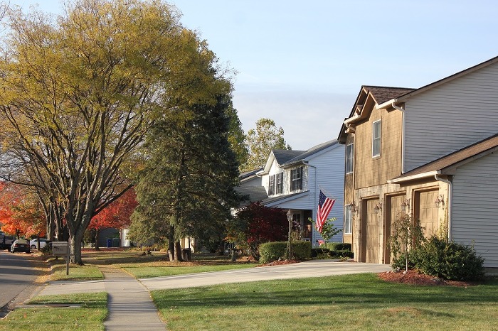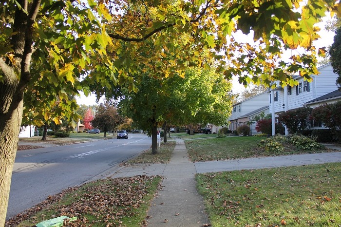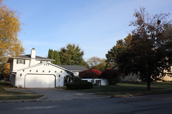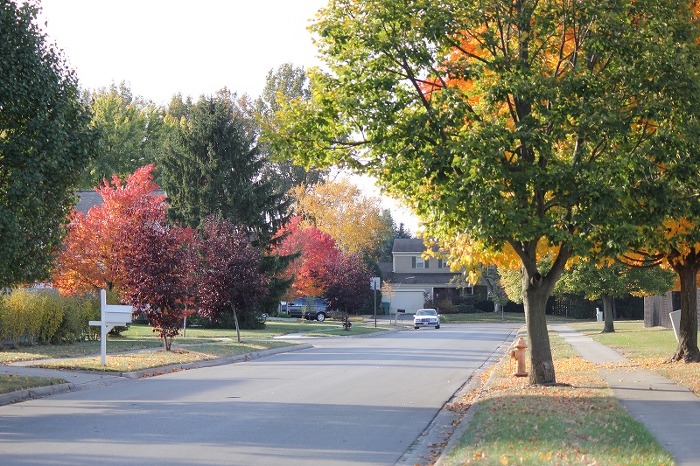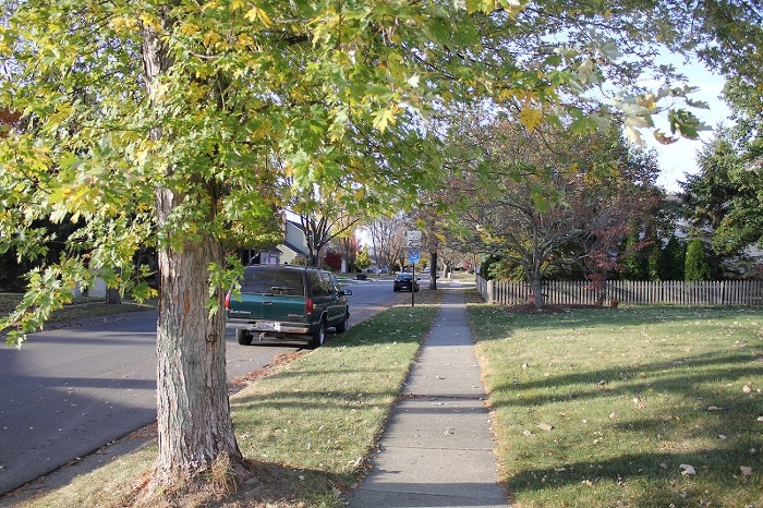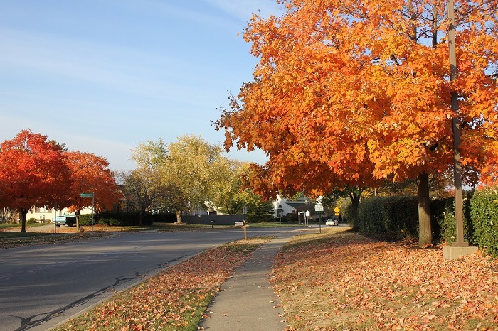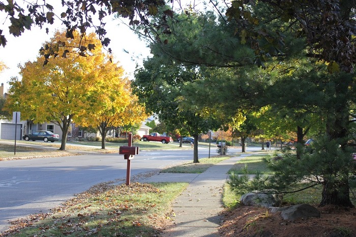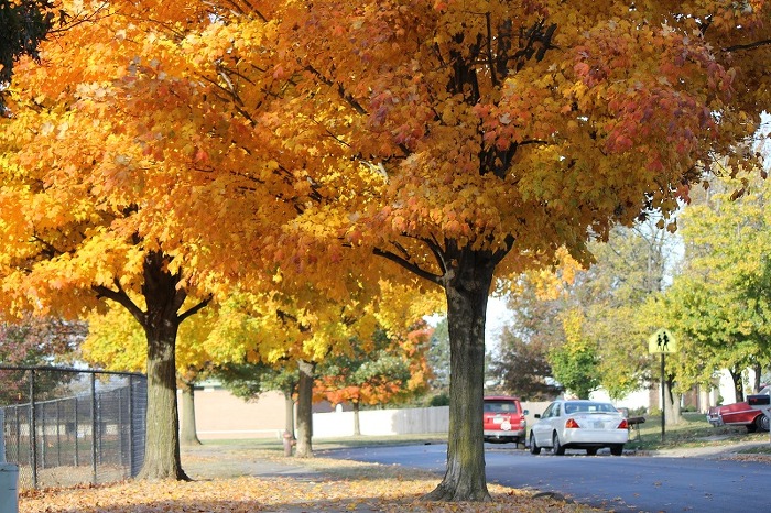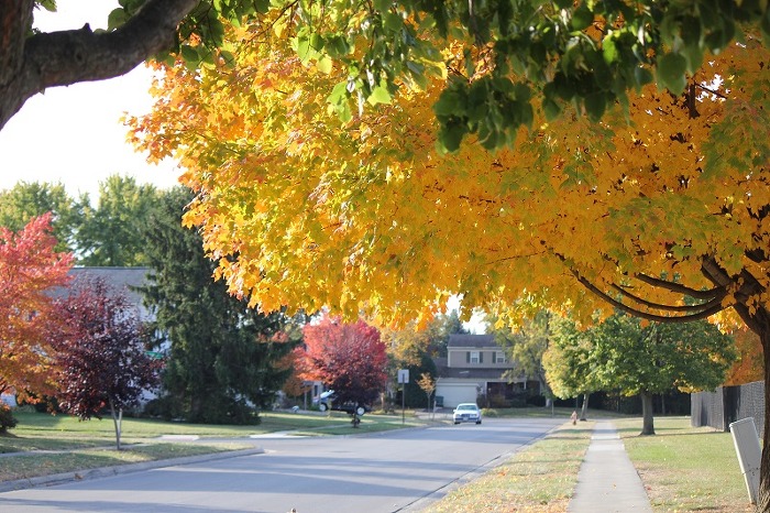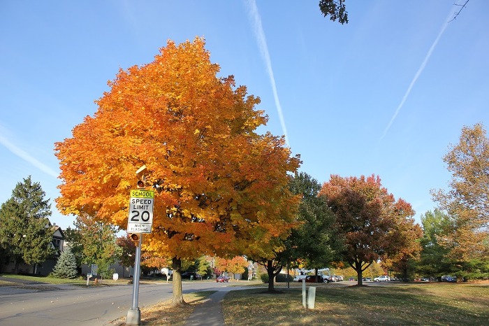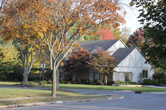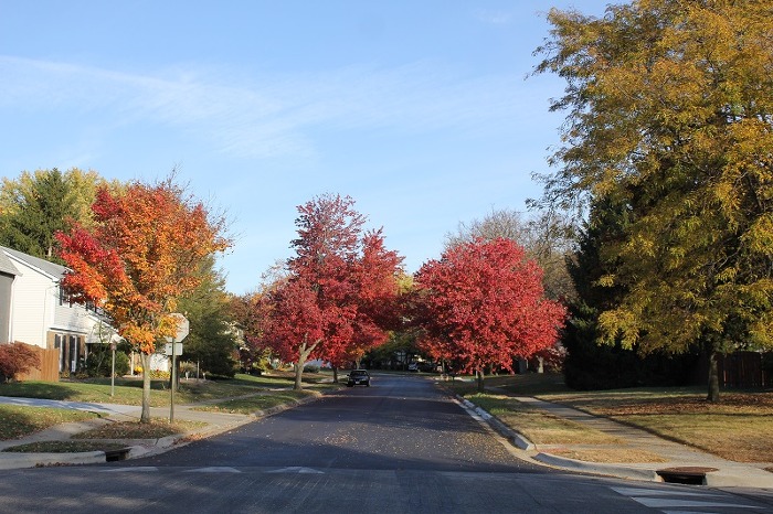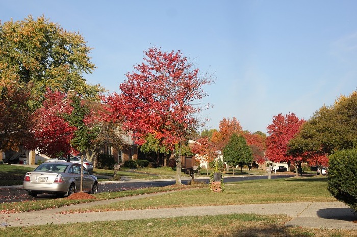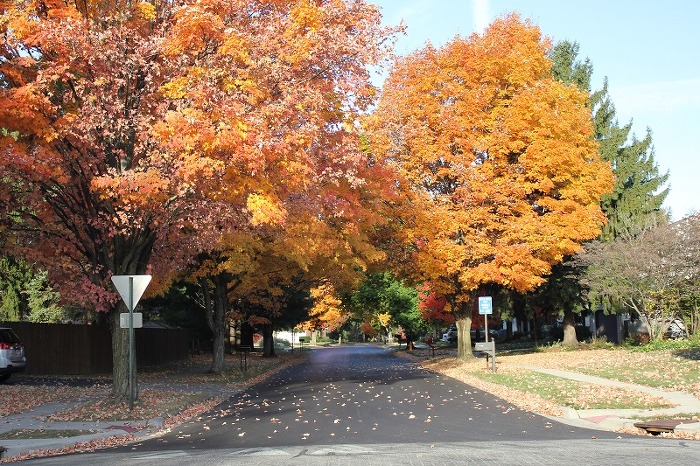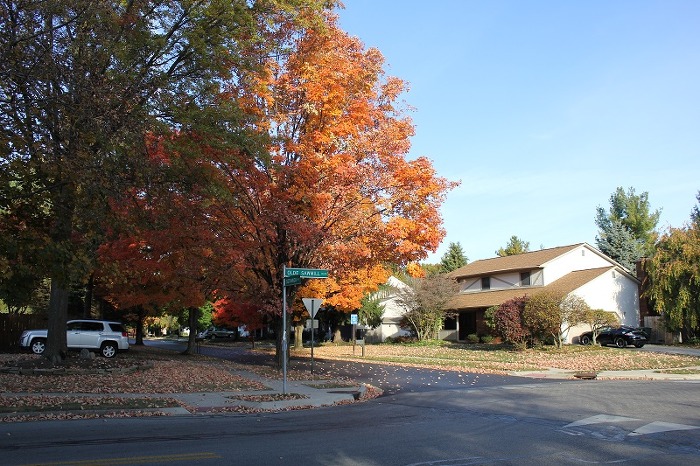 나무가 많은 관계로 주택가의 집들이 절정의 단풍에 가려져 있다.