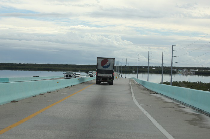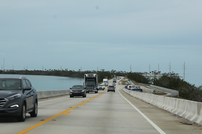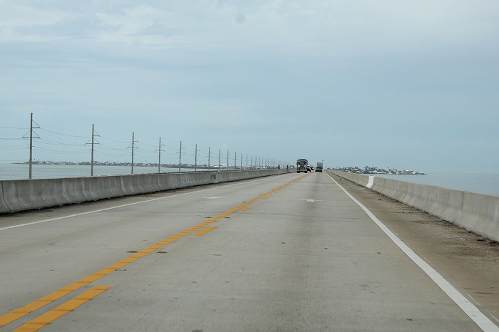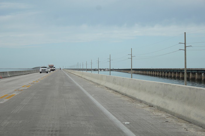 1935 년의 노동절 허리케인에 의한 Keys 철도 파괴 이후, 세븐 마일 다리를 포함한 철도 교량은 자동차 도로로 전환되었다. 이 도로 (미국 고속도로 1)는 Key Largo 남쪽에서 Key West까지 이어지는 Overseas Highway이다. 오늘날 이 독특한 해안 고속도로는 자동차로 여행하는 사람들이 플로리다 키의 열대 섬을 체험하고 미국 본토 어디에서도 찾을 수없는 이국적인 식물과 동물을 볼 수있게한다. View point 에 잠시 정차하여 멕시코 만쪽을 바라보며 휴식을 취했다.