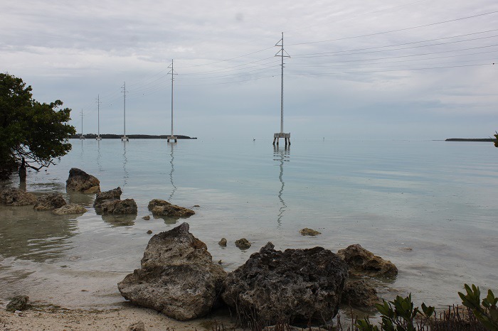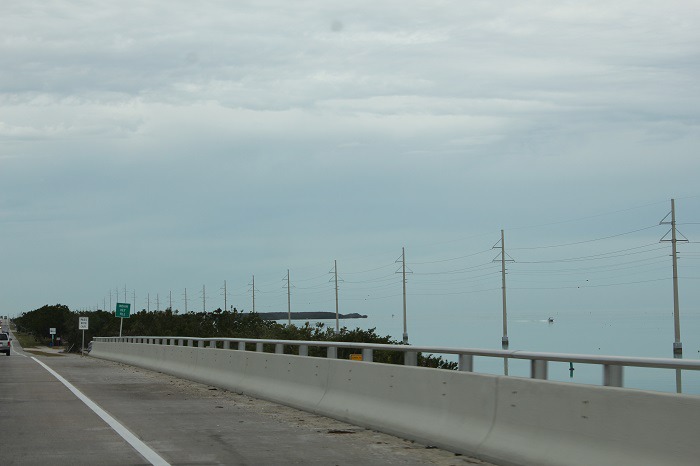 멕시코 만 쪽은 수심이 깊지않아 수정같이 맑은 물속의 산호초가 보이기 시작했고 본토와 키 웨스트와 키 섬들을 연결하는 유일한 송전선(Electric power line)을 이어주는 시멘트 전봇대가 바다물속에 설치되어 있다.