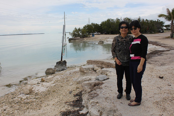 Hollywood를 출발하여 로날드 리건 유로고속도로와 US-1 국도로 운전한지 2시간(160Km)만에 Windley Key 섬을 지나고 있다, 돌고래, 스노클링 및 무성한 환경에서 쇼와 함께 수영하기위한 인기있는 해양 공원 휴양지 '바다의 극장'(Theater of the Sea)이 있는 곳을 지나면서 도로 주변에는 허리케인으로 입은 복구공사가 한창 진행중이었다.