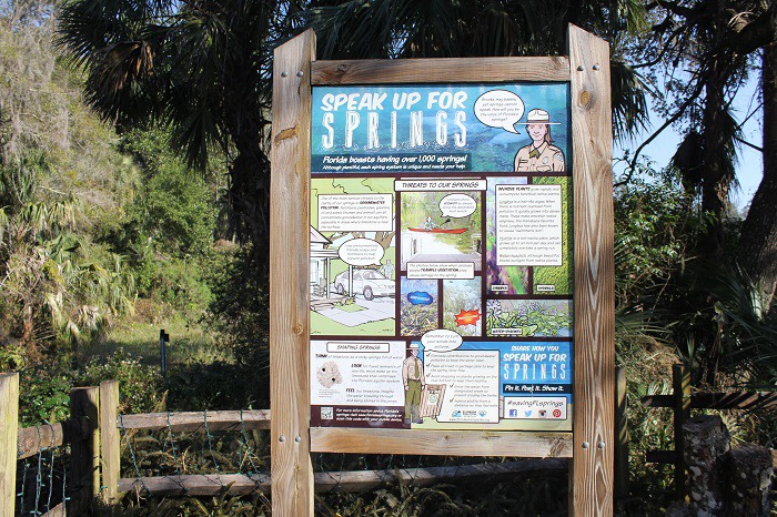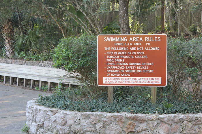 "Speak Up for SPRINGS" 사인에 공원에서의 여러 주의 사항이 적혀있다.