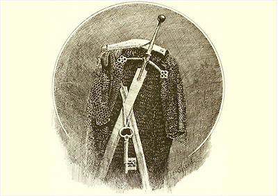 1890년 이전에 제작된 것으로 추정되는 클레이모어와 쇠사슬갑옷 삽화. |