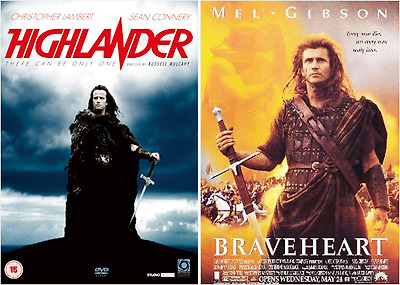 클레이모어를 유명하게 만든 두 영화 [하이랜더]와 [브레이브하트]의 포스터, 그러나 주인공들이 든 검은 검은 전형적인 클레이모어와는 형태상 차이가 있다.