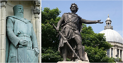 스코틀랜드의 영웅 윌리엄 월레스를 추모하는 동상들. 왼쪽은 일반적인 장검을 오른쪽은 전형적인 클레이모어를 들고 있다.