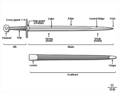 중세 서양 검의 부위별 용어. <출처: (cc) Stannered at wikipedia> |