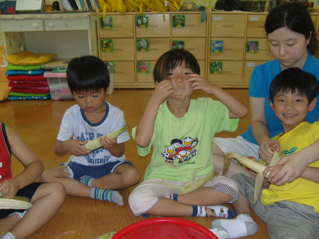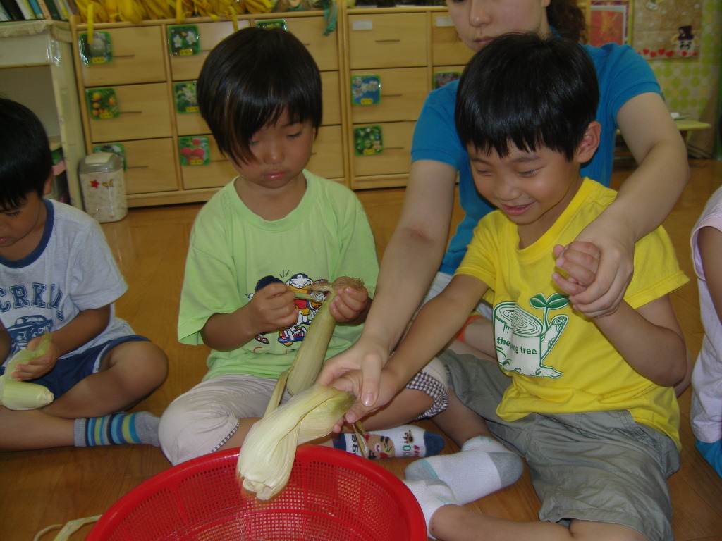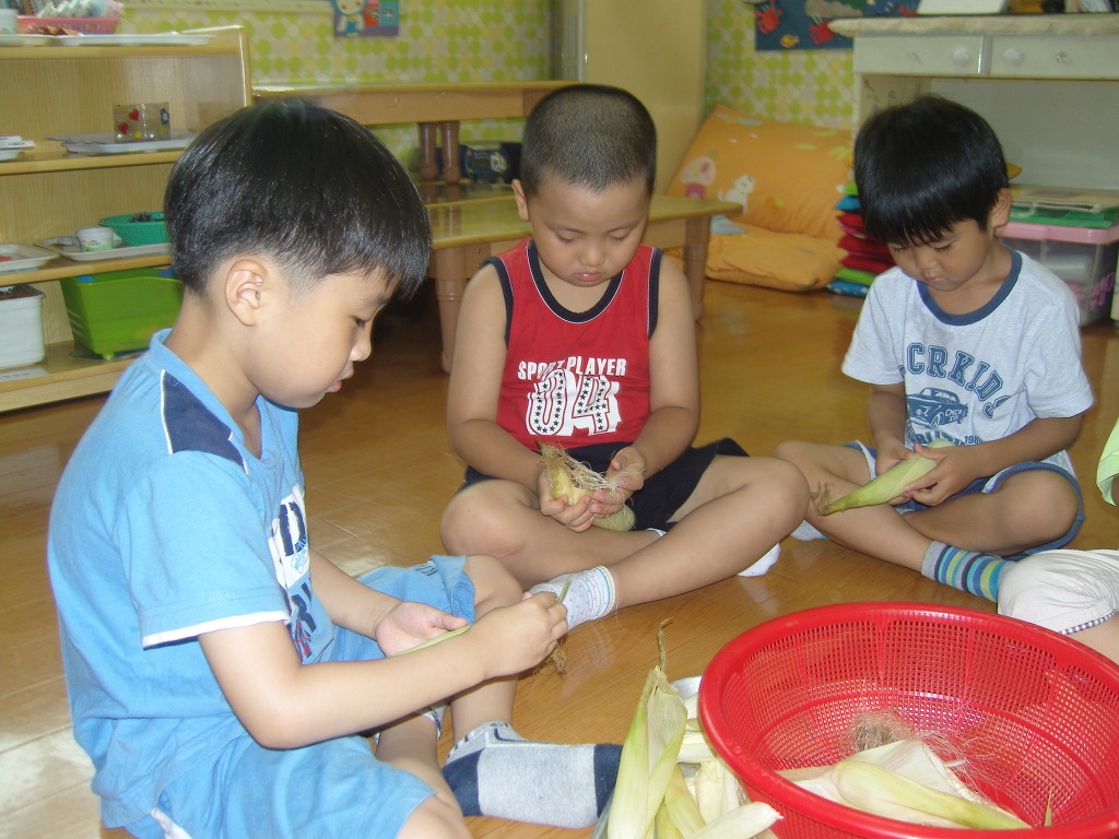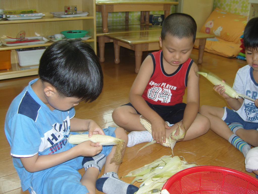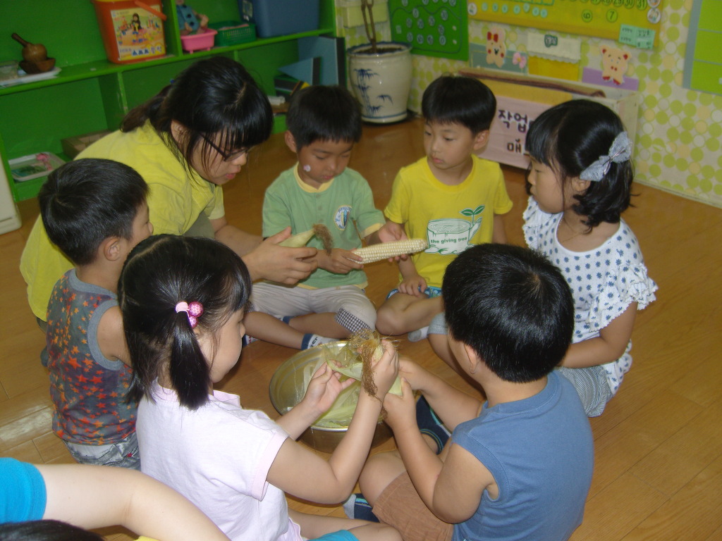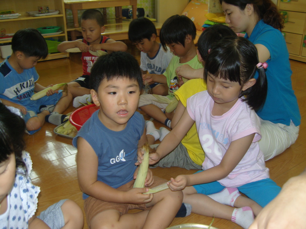 모두 옥수수 껍질을 벗기느라고 집중했데요~~~^^