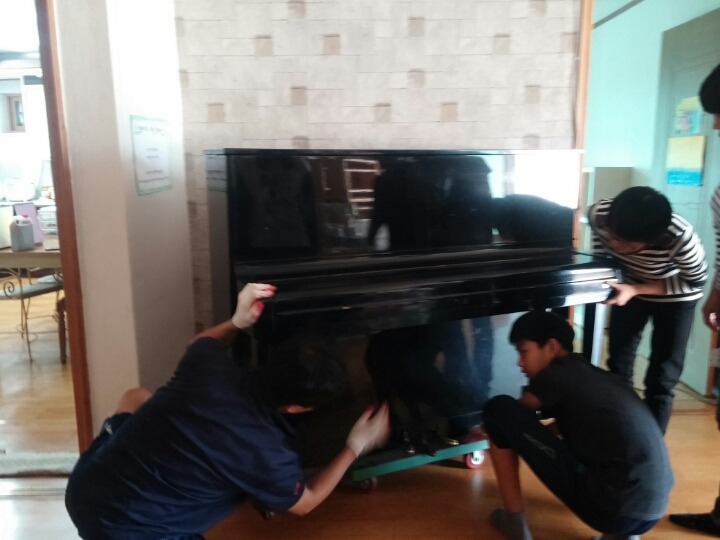 피아노를 주방에서 바깥으로 옮겼습니다~