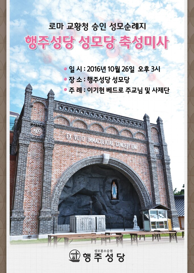 행주성당 성모당 축성미사 안내 작성자빛동행|작성시간16.09.28|조회수254 목록 댓글 1 글자크기 작게가 글자크기 크게가 로마 교황청 승인 성모 순례지인 행주성당의 성모당 축성미사가 10월26일(수) 오후3시 이기헌 베드로 교구장님 주례로 봉헌됩니다. 다음검색 현재 게시글 추가 기능 열기 북마크 공유하기 신고 센터로 신고 댓글 댓글 1 댓글쓰기 답글쓰기 댓글 리스트 작성자탕자의 귀향 | 작성시간 16.09.29 축하드립니다. 더운 여름 내내 송글송글 맺힌 땀의 결실을 마침내 보게 되셨네요. 로사리오성월에 맞갖은 행사라 더 의미가 있지 않을까 싶어 기대를 가져 봅니다~ 댓글 전체보기