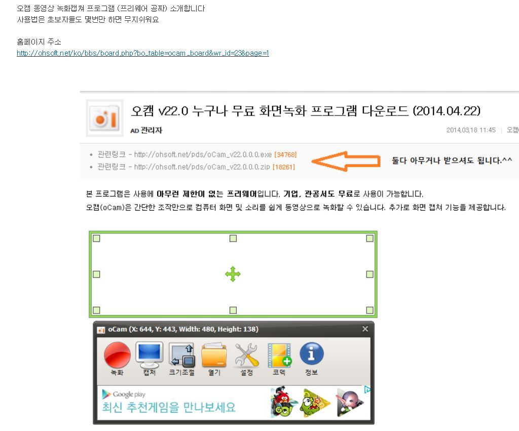 오캠 v22.카페회원들의 안전을 위해 운영진이 팝업, iframe 태그를 제한 하였습니다. 관련공지보기▶