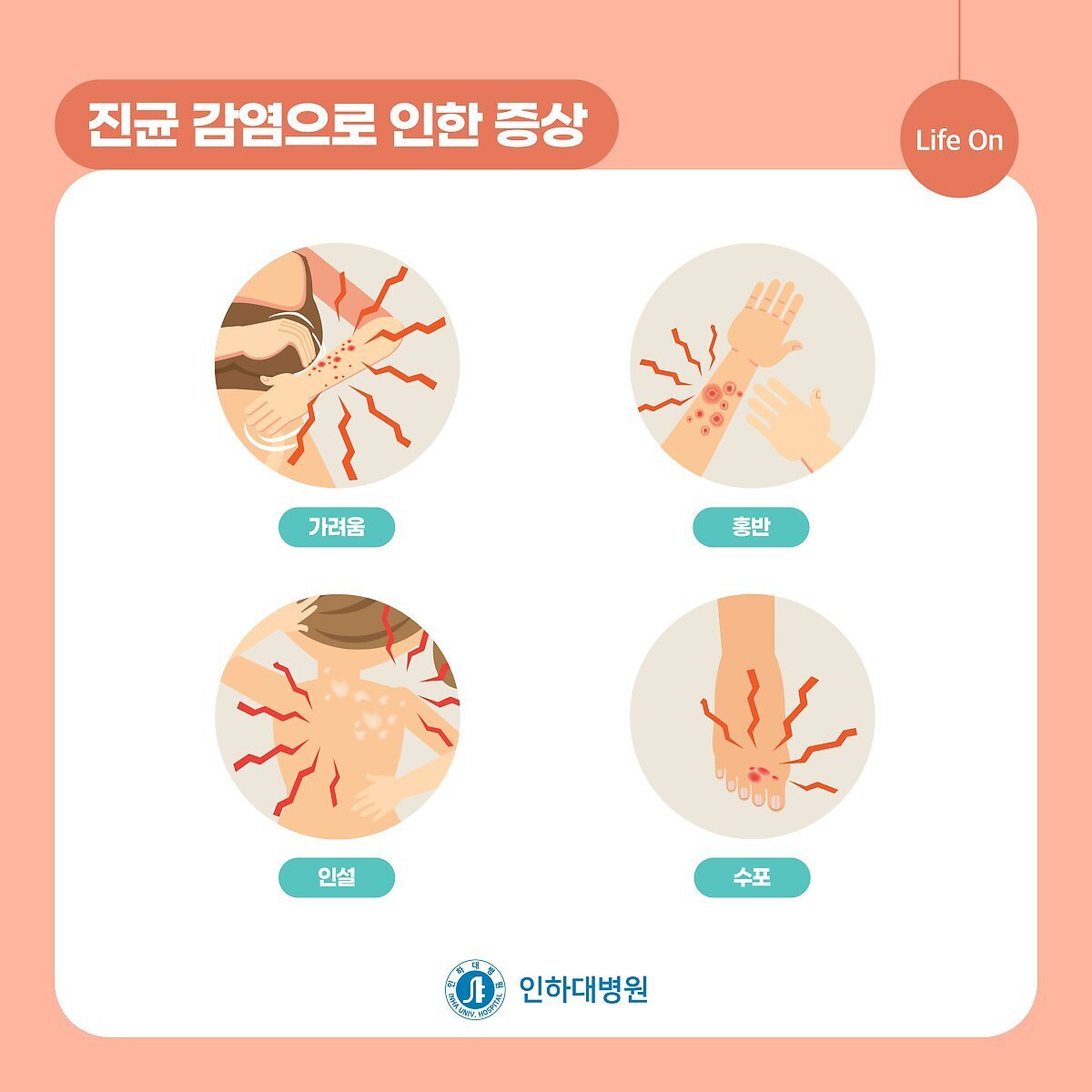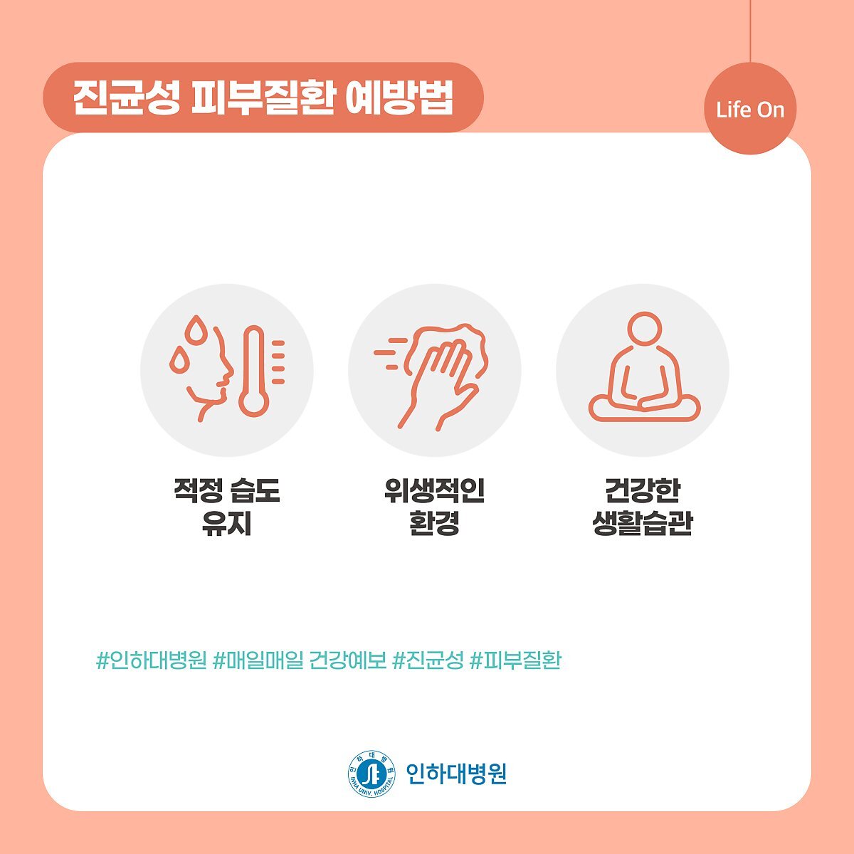 하지만 피로·스트레스·질병·노화 등으로 쇠약해진 신체상태, 청결치 못하고 밀폐된 환경, 덥고 습한 기후 등에서는 각종 피부질환을 일으킬 수 있습니다.