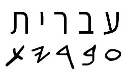 히브리어 단어 '이브리트'(Ivrit, "히브리어")가 현대 히브리 문자 (상단)와 고대 히브리 문자 (하단)로 쓰여 있다.
