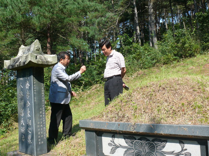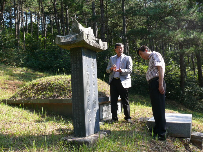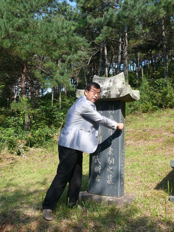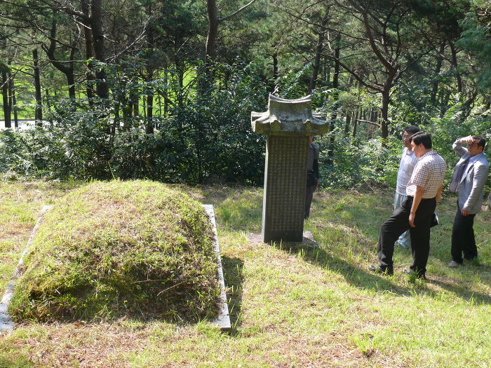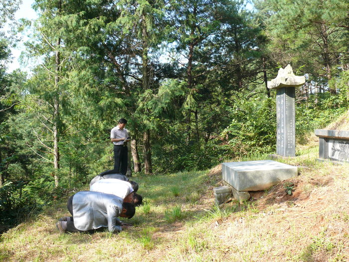 경재(耕齋) 이병일(李秉馹) 선생님의 묘소를 찾아 참배중이신 앞으로부터 이경룡원장님 조남호교수님, 박성극 하곡회장님 그리고 안내를 해주신 기도중이신 광주의 이동균 목사님