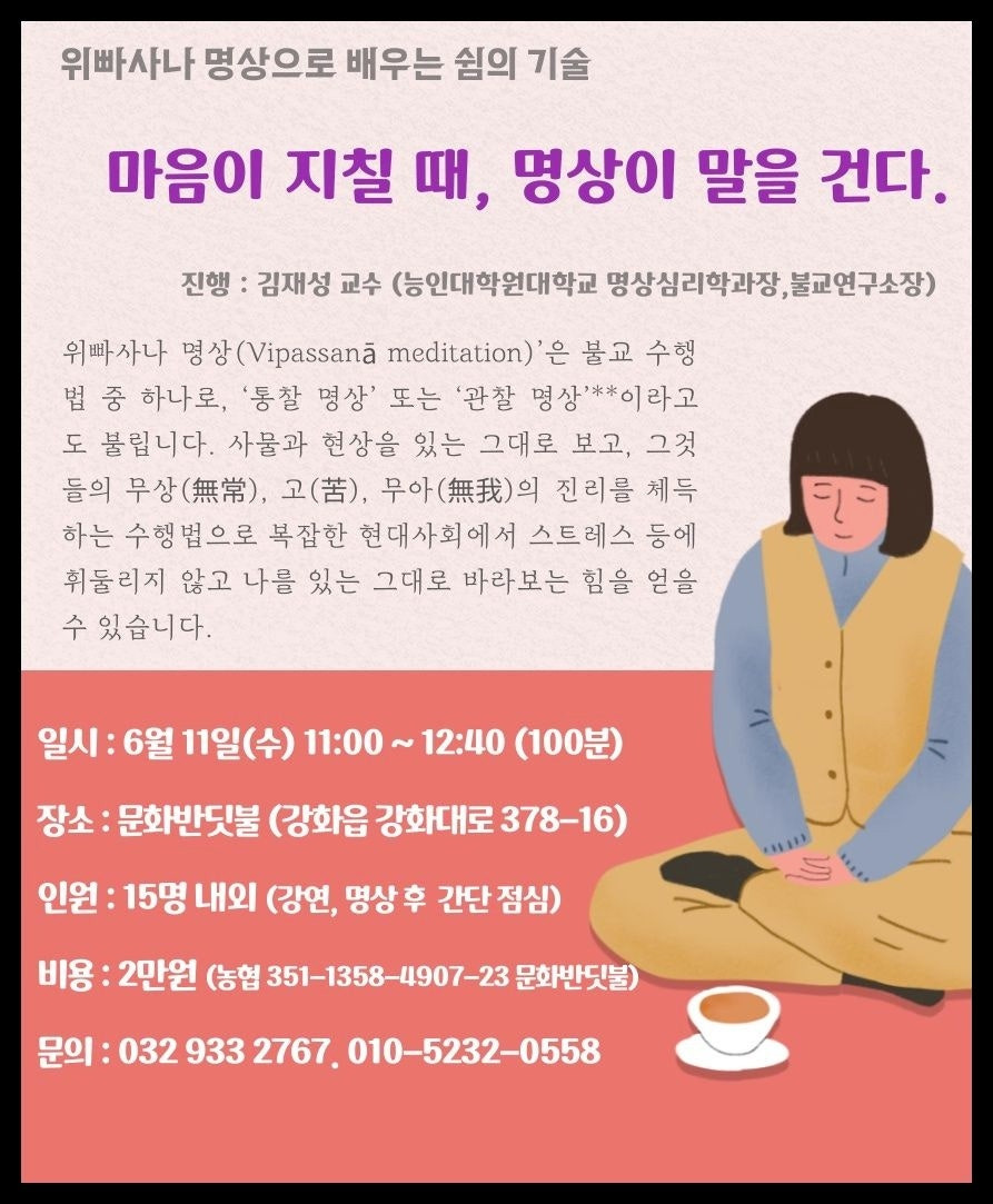 인원 : 15명 내외(강연, 명상 후 간단 점심)