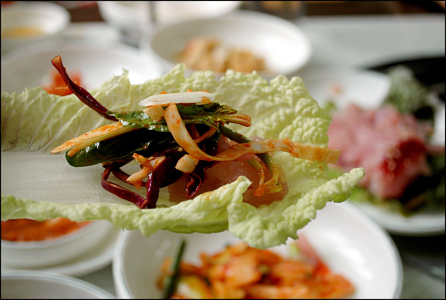 상추에 한첩 올려서 육회와 양념무침을 곁들여서...얌~얌!