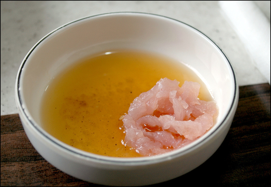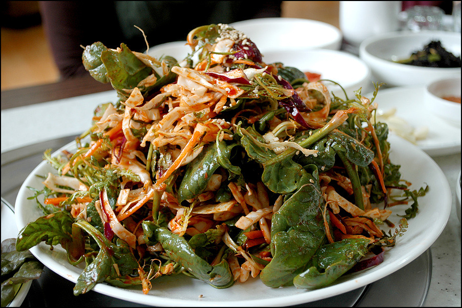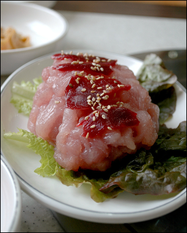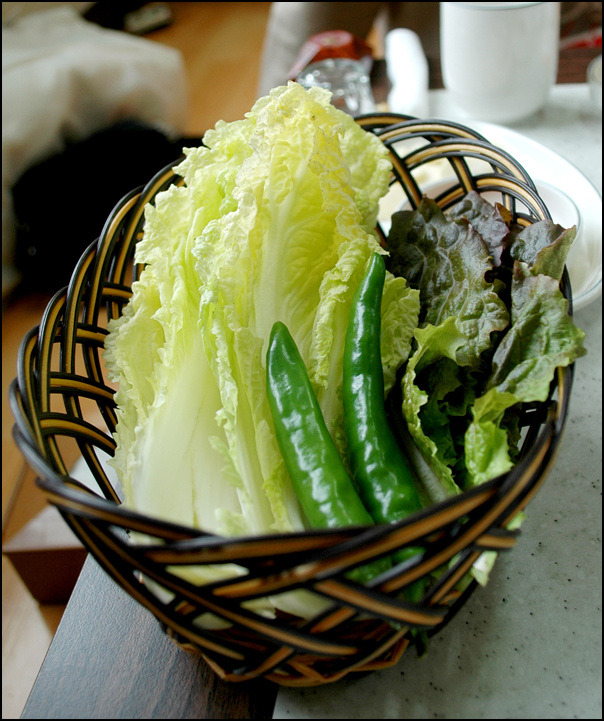 참기름에 버무려진 야채와 회를 같이 쌓서 먹어도 맛있다...얌념이 강하게 느껴진다