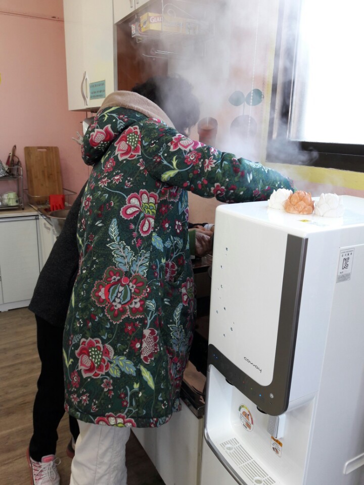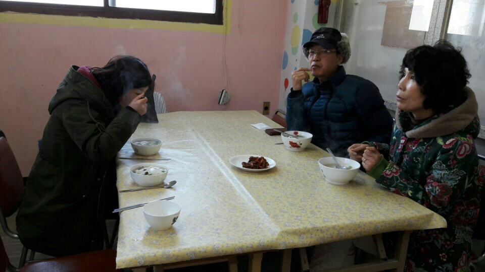 - 2012.6월에 시작하여이번에 56회째를 맞는다. 이번에는 명절이 들어있는 1월이라 떡국을 준비했습니다. 천군만마와 다름없던 김영란언니의 부재로 약간 썰렁 했으나 늘 하던대로 준비하여 영희언니의 일사분란한 손놀림으로 맛있는 떡국을 나누어 먹을 수 있었습니다.