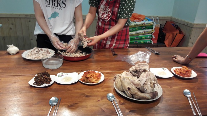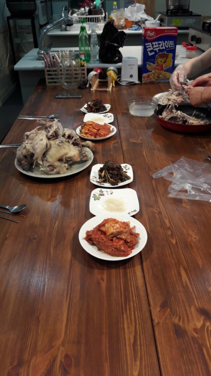 작성자취원 작성시간 18.07.21 잘 삶아낸 촌닭을 보니 군침 돕니다. 하하님들 해밀선생님 해밀아이들, 정서적으로 잘 맞는다는 느낌 있어요. 하하엄마들과 얘기 주고받으며 맛있게 먹고, 고맙다고 공손하게 인사하는 아이들이 참 예뻐요. 초복날 땀 뻘뻘 흘리시며 해밀학교아이들 위해 삼계탕 끓이시느라 너무 애쓰셨습니다. 향수어린 닭죽 맛! 또 먹고 싶어요.