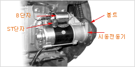 시동전동기의 마그네틱 스위치의 B단자와- ST선을 떼어낸다