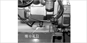 배수꼭지를 열어 냉각수를 뺀다.- 필요 : 물통