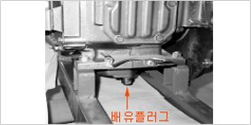오일팬 밑쪽의 배유플러그를 풀어 엔진 오일을 뺀다.- 필요 : 22mm 소켓 , 기름통