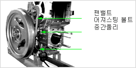 볼트를 왼쪽으로 돌려 풀리를 슬라이드 시켜서- 냉각 벨트를 벗긴다.