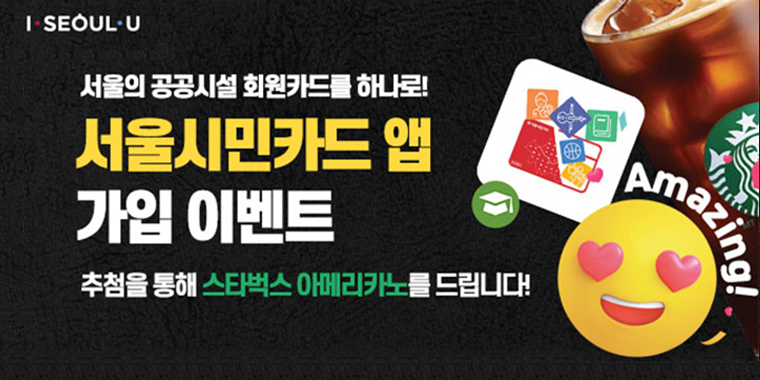 7월 9일부터 29일까지 ‘서울시민카드 앱 가입 이벤트’도 진행된다. 앱을 설치하고 신규로 가입하면 자동 응모되며, 기존 가입자도 시설카드를 추가하면 자동 응모된다. 총 400명을 무작위 선정해 커피쿠폰을 증정할 예정이다.