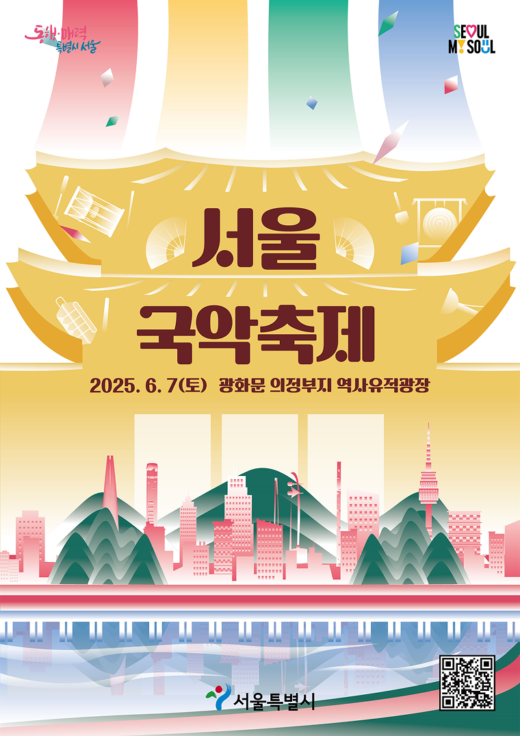 서울시가 오는 6월 7일 오전 10시부터 오후 9시까지 광화문 앞 의정부지 역사유적광장에서 ‘2025 제7회 서울국악축제’를 개최한다. 특히 올해는 매년 6월 5일을 ‘국악의 날’로 지정한 첫 해로, 축제의 상징성과 중요성이 더욱 크다.
