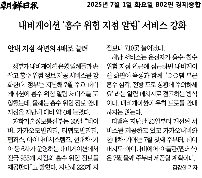네비로 홍수 위험 지점 알림 서비스 강화 작성자행정사|작성시간25.07.01|조회수6 목록 댓글 0 글자크기 작게가 글자크기 크게가 다음검색 현재 게시글 추가 기능 열기 북마크 공유하기 신고 센터로 신고 댓글 댓글 0 댓글쓰기 답글쓰기 댓글 리스트