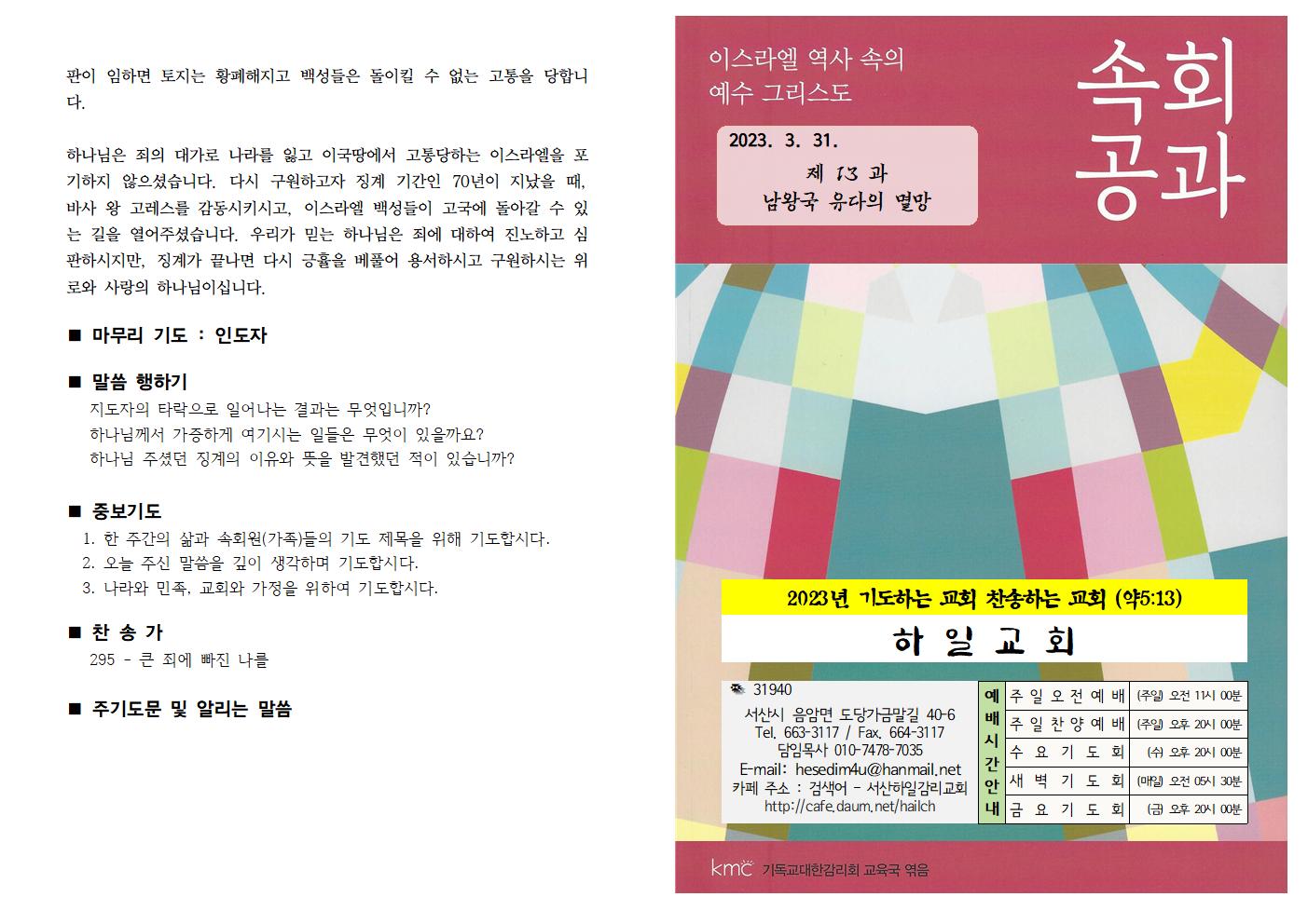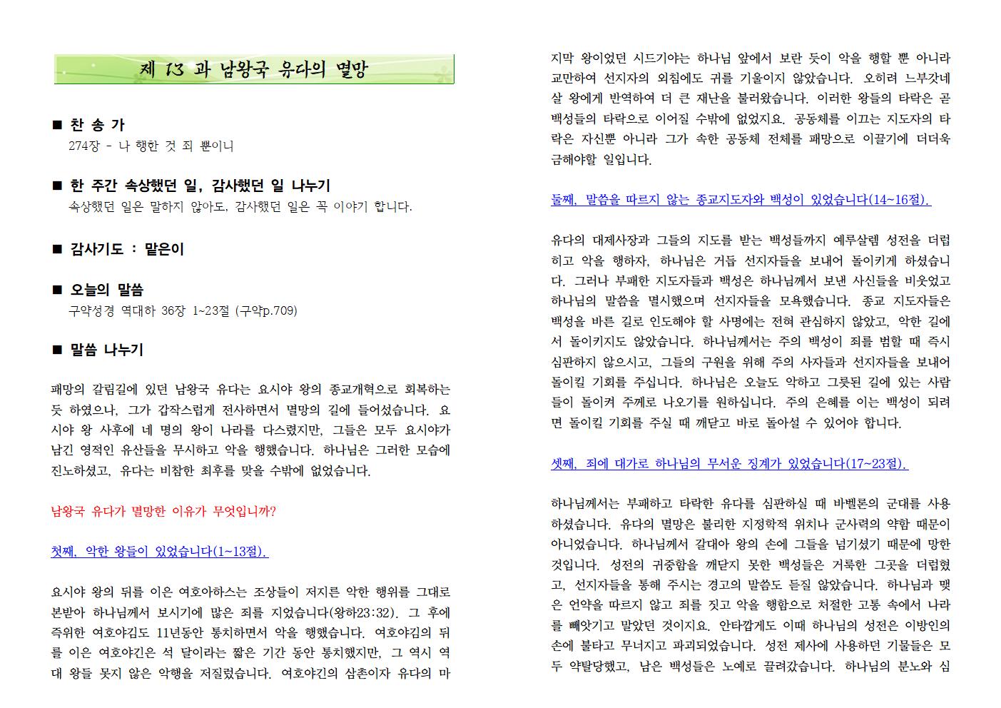 2023년 제 13 과 남왕국 유다의 멸망 작성자서설원 목사|작성시간23.03.18|조회수28 목록 댓글 0 글자크기 작게가 글자크기 크게가 다음검색 현재 게시글 추가 기능 열기 북마크 신고 센터로 신고 댓글 댓글 0 댓글쓰기 답글쓰기 댓글 리스트