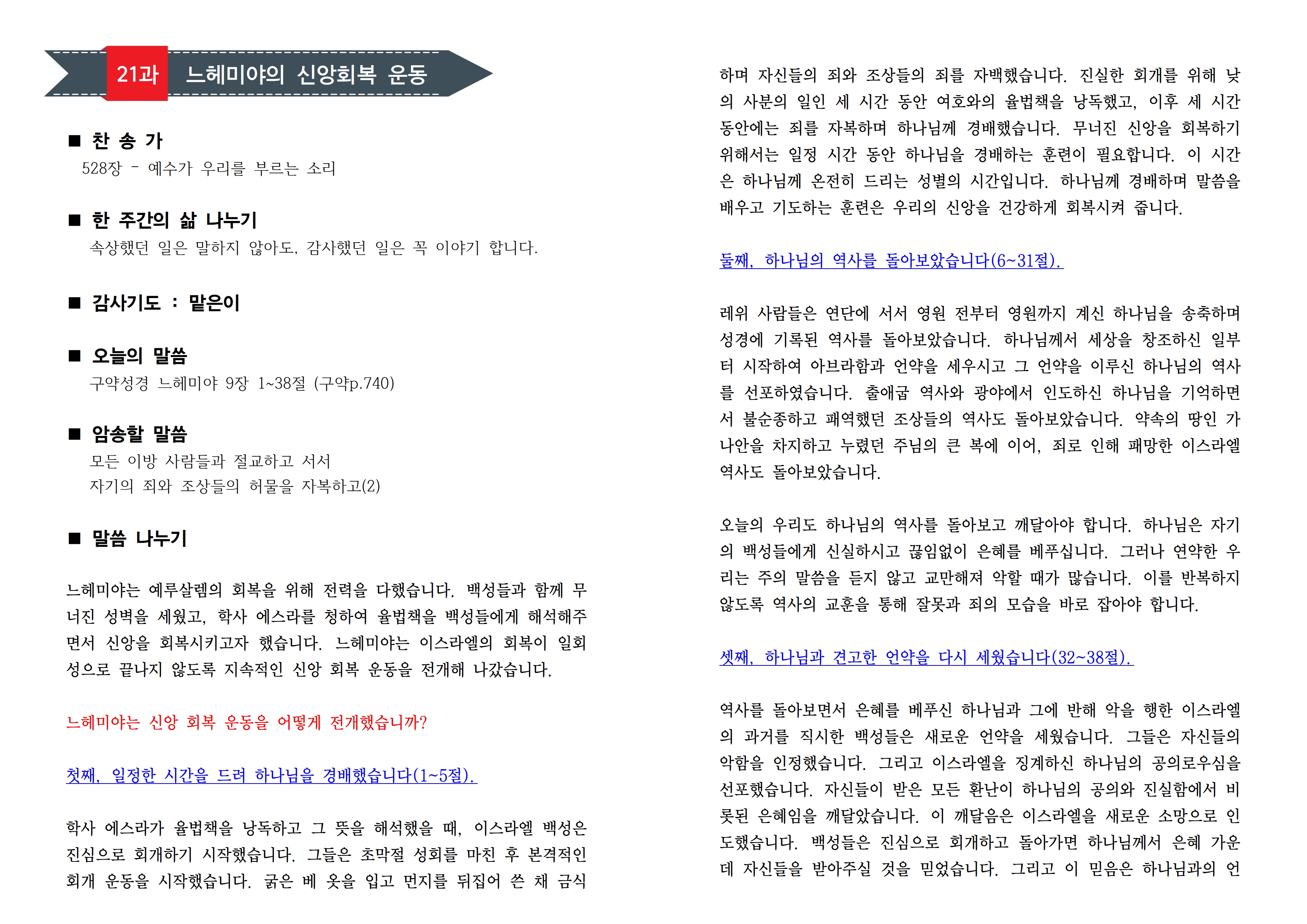 2024년 제 21 과 느헤미야의 신앙 회복 운동 작성자서설원 목사|작성시간24.04.25|조회수19 목록 댓글 0 글자크기 작게가 글자크기 크게가 다음검색 현재 게시글 추가 기능 열기 북마크 신고 센터로 신고 댓글 댓글 0 댓글쓰기 답글쓰기 댓글 리스트