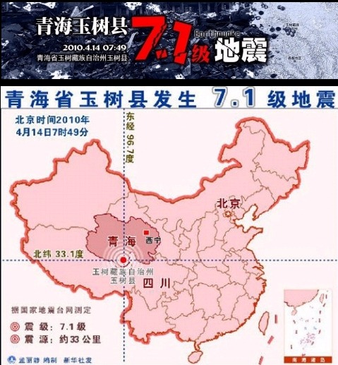 青海玉树县7.1级地震已造成617人死亡,失踪313人,9110人受伤,其中970人重伤。