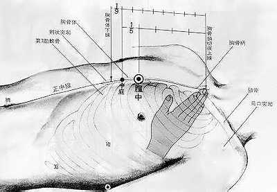 8.(운화의 기가 모이는) 기회는 가슴 중간의 근에 위치한 임맥의 전중혈이다.