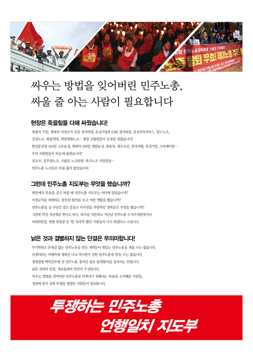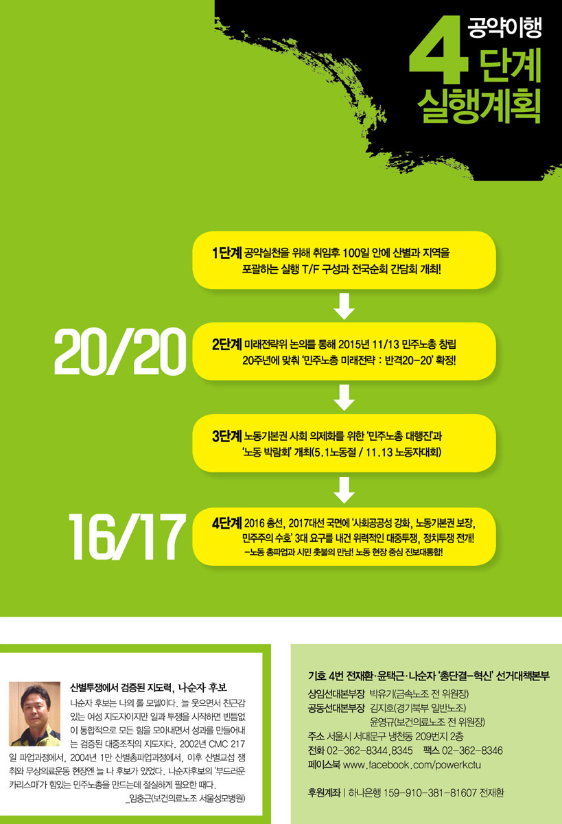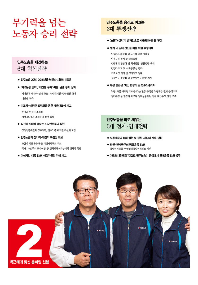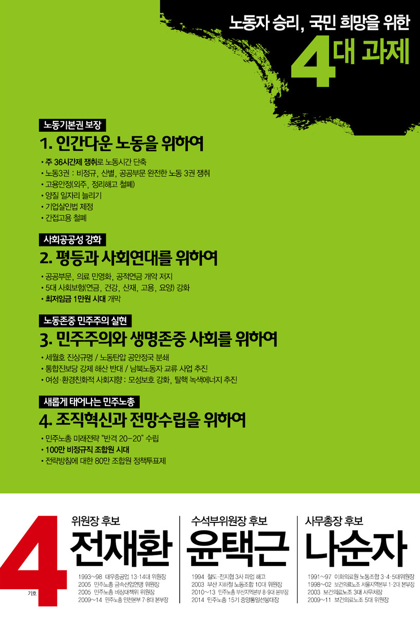 [선관위]민주노총 제8기 임원 후보자 결선투표 공보물 작성자주선락|작성시간14.12.01|조회수75 목록 댓글 0 글자크기 작게가 글자크기 크게가 이번 투표는 2번과 4번 후보의 결선투표로 진행됩니다(ARS: 02-2670-9212) 12/17~21까지 오후4시 ~8시 사이에 전화가 갈 예정입니다 첨부파일첨부된 파일이 9개 있습니다. pdf 파일 공보물.pdf 다운로드 jpg 파일 4-1.jpg 다운로드 jpg 파일 4-2.jpg 다운로드 jpg 파일 4-3.jpg 다운로드 jpg 파일 4-4.jpg 다운로드 jpg 파일 2-1.jpg 다운로드 jpg 파일 2-2.jpg 다운로드 jpg 파일 2-3.jpg 다운로드 jpg 파일 2-4.jpg 다운로드 다음검색 현재 게시글 추가 기능 열기 북마크 공유하기 신고 센터로 신고 댓글 댓글 0 댓글쓰기 답글쓰기 댓글 리스트